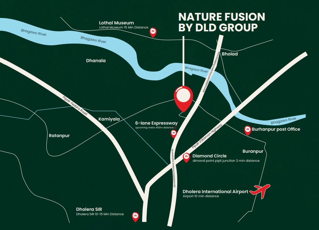 Nature Fusion by DLD Group is a thoughtfully planned real estate development nestled in the promising region of Dholera-Anandpur, Ahmedabad. Blending modern infrastructure with natural surroundings, Nature Fusion is designed for those who seek serenity, connectivity, and long-term value.