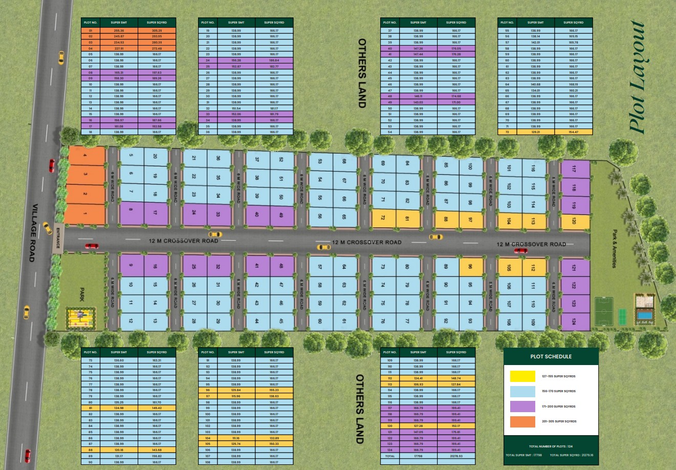 Plot sizes : 127.84 - 293.95 sq. yards